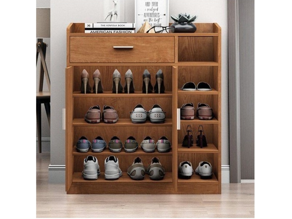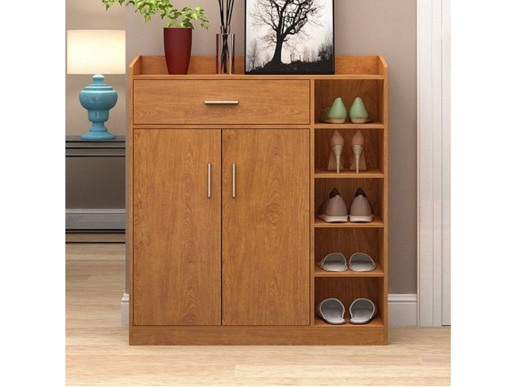 Điểm nổi bật của Tủ giày GHT41 nằm ở thiết kế tiết kiệm không gian nhưng vẫn đảm bảo công năng sử dụng hiệu quả. Các tầng kệ được bố trí hợp lý giúp phân loại giày dép rõ ràng và thuận tiện khi sử dụng hằng ngày. Hộc lưu trữ hỗ trợ cất giữ các vật dụng nhỏ như chìa khóa, tất hoặc phụ kiện, góp phần giữ cho khu vực lối vào luôn gọn gàng và ngăn nắp.