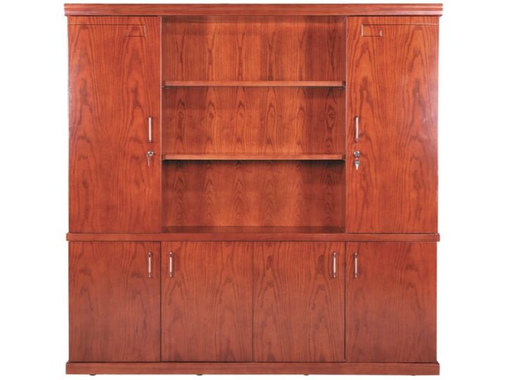 Phần dưới của tủ gồm 4 cánh mở, chia thành nhiều ngăn chứa rộng rãi, đảm bảo khả năng lưu trữ tối đa mà vẫn giữ được sự gọn gàng, thẩm mỹ cho không gian văn phòng.