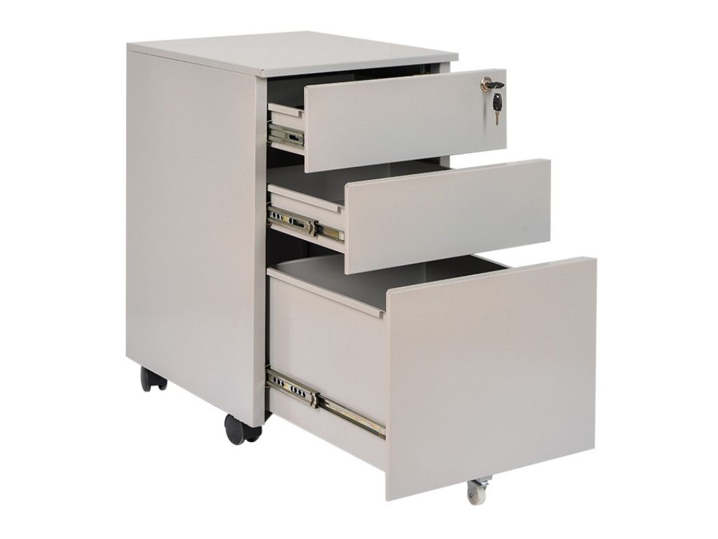 Với kích thước W396 x D480 x H655 mm, sản phẩm có tỷ lệ nhỏ gọn, dễ dàng đặt dưới gầm bàn làm việc hoặc ở bất kỳ vị trí nào trong văn phòng. Tủ có thể di chuyển linh hoạt nhờ hệ thống bánh xe ẩn bên dưới, giúp người dùng dễ dàng thay đổi vị trí khi cần mà không gây trầy xước sàn.