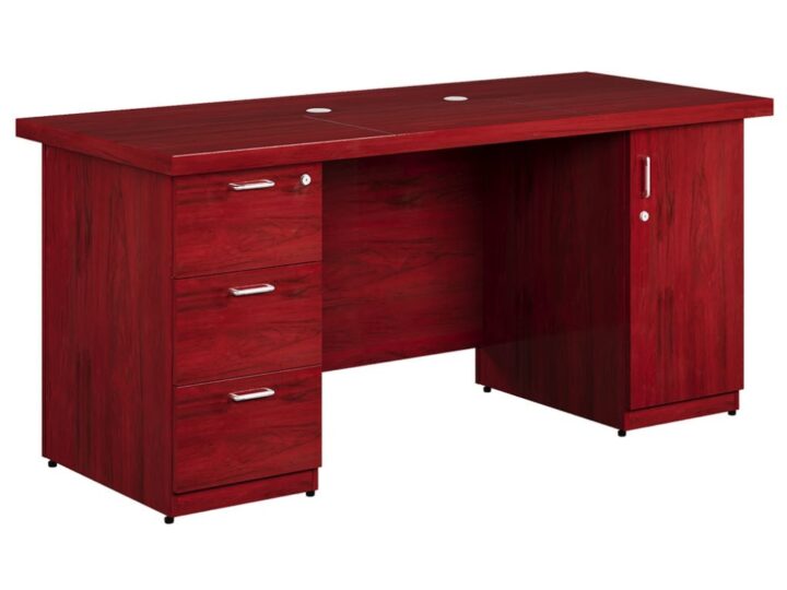 Cấu tạo của bàn ET1600I được thiết kế hợp lý, mang đến nhiều tiện ích cho người dùng. Một bên bàn được trang bị cánh mở tiện lợi, thích hợp để cất giữ tài liệu, hồ sơ hoặc những vật dụng ít dùng đến nhưng vẫn cần đảm bảo sự gọn gàng. Bên còn lại là hộc liền 3 ngăn kéo có khóa, mang lại giải pháp lưu trữ an toàn và khoa học cho giấy tờ quan trọng hoặc vật dụng cá nhân. Sự bố trí này giúp lãnh đạo có thể sắp xếp công việc một cách khoa học, tiết kiệm thời gian tìm kiếm và tăng hiệu quả xử lý công việc hàng ngày.