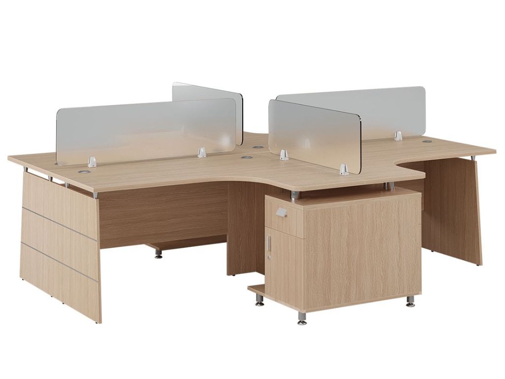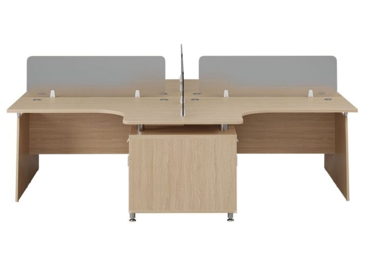 Với kích thước tổng thể W2806 x D2406 mm, module HRMD02 phù hợp với nhiều mô hình văn phòng khác nhau – từ công ty lớn đến doanh nghiệp vừa và nhỏ. Mỗi vị trí trong cụm bàn đều được bố trí khoa học, có đủ không gian cho máy tính, tài liệu và các thiết bị làm việc khác. Cấu trúc 4 chỗ ngồi giúp tăng hiệu quả làm việc nhóm, đồng thời tiết kiệm diện tích so với việc bố trí bàn đơn lẻ.