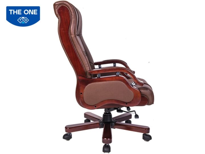 Điểm ấn tượng đầu tiên của ghế Giám đốc TQ01 chính là sự kết hợp hài hòa giữa phong cách hiện đại và nét tinh tế cổ điển. Các chi tiết uốn cong mềm mại ở phần tay vịn gỗ sơn kết hợp cùng đường nét mạnh mẽ ở lưng ghế cao tạo nên tổng thể cân đối, vững chãi. Khi được bố trí trong phòng giám đốc, chiếc ghế này không chỉ tôn thêm sự sang trọng cho không gian mà còn thể hiện được vị thế và đẳng cấp của người lãnh đạo.