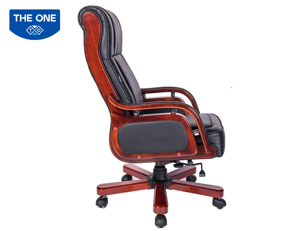 Phần tay vịn và chân ghế của ghế Giám đốc TQ12 được làm từ gỗ sơn cao cấp, không chỉ chắc chắn mà còn tạo vẻ ngoài sang trọng, nổi bật. Tay vịn được bo cong mềm mại, giúp nâng đỡ cánh tay tự nhiên, tạo cảm giác thư giãn. Chân ghế vững chãi, tích hợp bánh xe xoay linh hoạt, giúp di chuyển dễ dàng trong không gian làm việc mà vẫn đảm bảo sự êm ái, tiện lợi.