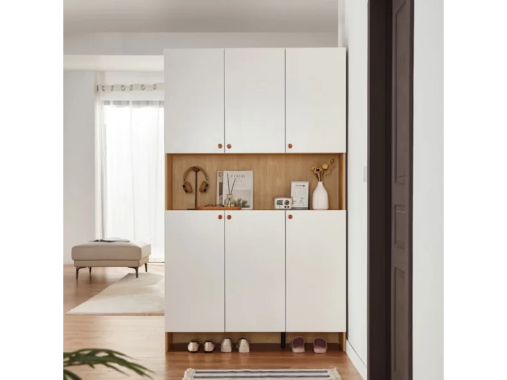 Điểm nổi bật của Tủ giày GHT31 nằm ở thiết kế kết hợp giữa tủ giày và vách ngăn trang trí. Các tầng kệ giúp phân loại giày dép rõ ràng, trong khi các ô kệ mở có thể dùng để trưng bày đồ trang trí, sách hoặc vật dụng cá nhân. Nhờ cấu trúc thông minh, Tủ giày GHT31 vừa đảm bảo công năng lưu trữ vừa tạo điểm nhấn thẩm mỹ cho không gian sống.