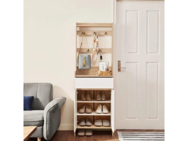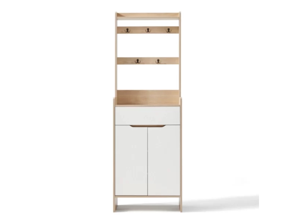 Điểm nổi bật của Tủ giày GHT34 nằm ở thiết kế tiện dụng với nhiều tầng kệ kết hợp hộc ngăn kéo. Các tầng kệ giúp phân loại giày dép rõ ràng và thuận tiện khi sử dụng hằng ngày. Hộc ngăn kéo hỗ trợ lưu trữ các vật dụng nhỏ như chìa khóa, tất hoặc phụ kiện, góp phần giữ cho khu vực lối vào luôn gọn gàng. Nhờ cấu trúc hợp lý, Tủ giày GHT34 mang lại sự tiện lợi trong quá trình sử dụng.
