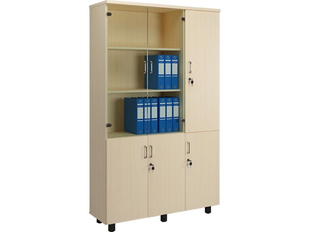 Phần trên của tủ hồ sơ AT1960-3B được chia thành 3 khoang: hai khoang cánh kính sang trọng tạo không gian trưng bày hồ sơ, tài liệu hoặc đồ trang trí giúp không gian làm việc thêm tính thẩm mỹ; khoang còn lại là khoang treo quần áo rất hữu ích cho những ai cần thay trang phục tại văn phòng hoặc muốn giữ áo vest, áo khoác luôn phẳng phiu và ngăn nắp. Cánh kính sử dụng khung chắc chắn, mở êm ái và bảo vệ tài liệu khỏi bụi bẩn.