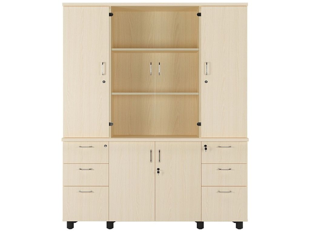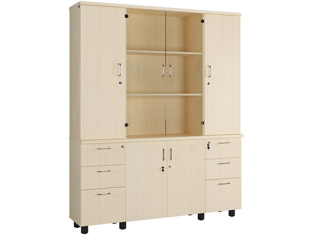 Kích thước tiêu chuẩn W1595 x D400 x H1960 mm của tủ phù hợp với đa dạng không gian văn phòng, đặc biệt là những khu vực cần lưu trữ nhiều nhưng vẫn ưu tiên tính thẩm mỹ. Chiều cao 1960 mm tận dụng hiệu quả không gian theo chiều đứng, giúp tiết kiệm diện tích. Độ sâu 400 mm lý tưởng cho việc lưu trữ hồ sơ khổ lớn, trong khi chiều ngang rộng 1595 mm cho phép tạo nên hệ tủ đồ sộ nhưng vẫn cân đối, thanh thoát.