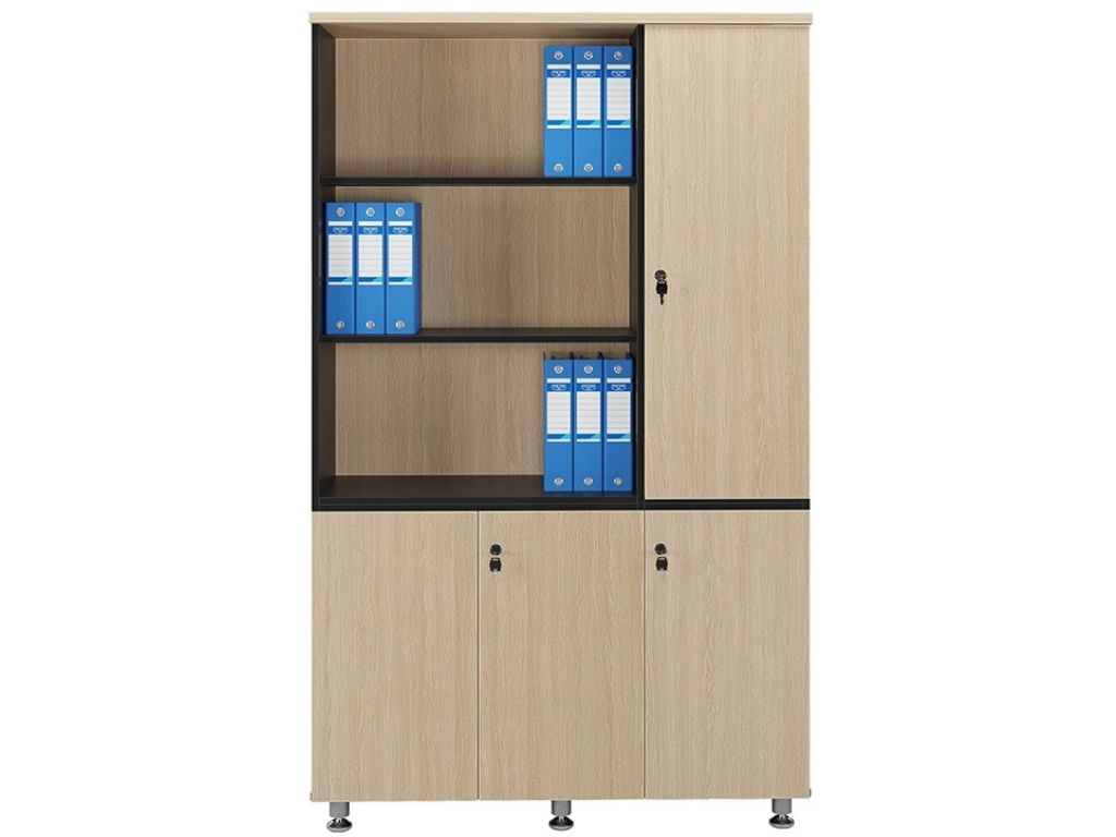 Ở phần trên, tủ được bố trí ba khoang tài liệu mở giúp người dùng thao tác nhanh chóng, dễ dàng lấy – cất tài liệu theo từng nhóm hồ sơ. Thiết kế không cánh giúp tiết kiệm thời gian và tối ưu hóa khả năng quan sát, đặc biệt phù hợp với các phòng ban thường xuyên xử lý nhiều chứng từ hoặc cần trưng bày tài liệu tra cứu nhanh. Bên cạnh ba khoang để file, tủ còn tích hợp một khoang treo áo tiện ích, cho phép người dùng cất giữ áo khoác, vest hoặc các vật dụng cá nhân một cách tinh tế và kín đáo. Đây là chi tiết tạo nên sự chuyên nghiệp trong không gian làm việc, đặc biệt hữu ích trong môi trường văn phòng hiện đại.