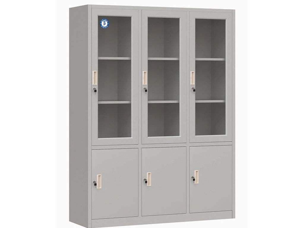 Khoang phía dưới với 3 cánh sắt mở kín đáo thích hợp để lưu trữ các hồ sơ quan trọng, tài liệu nội bộ hoặc vật dụng văn phòng không cần trưng bày. Cánh sắt bền chắc, vận hành êm ái cùng khóa bảo mật giúp bảo vệ tài liệu hiệu quả, đồng thời đảm bảo tuổi thọ lâu dài cho tủ. Sự kết hợp giữa cánh kính và cánh sắt mang đến sự cân bằng giữa trưng bày và bảo mật, tối ưu hóa công năng sử dụng.